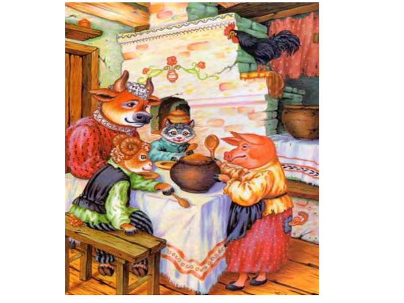 4. Избу срубили, печку сложили, стены проконопатили, печку сложили.