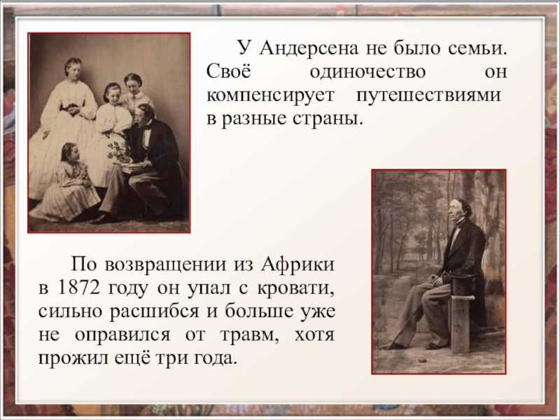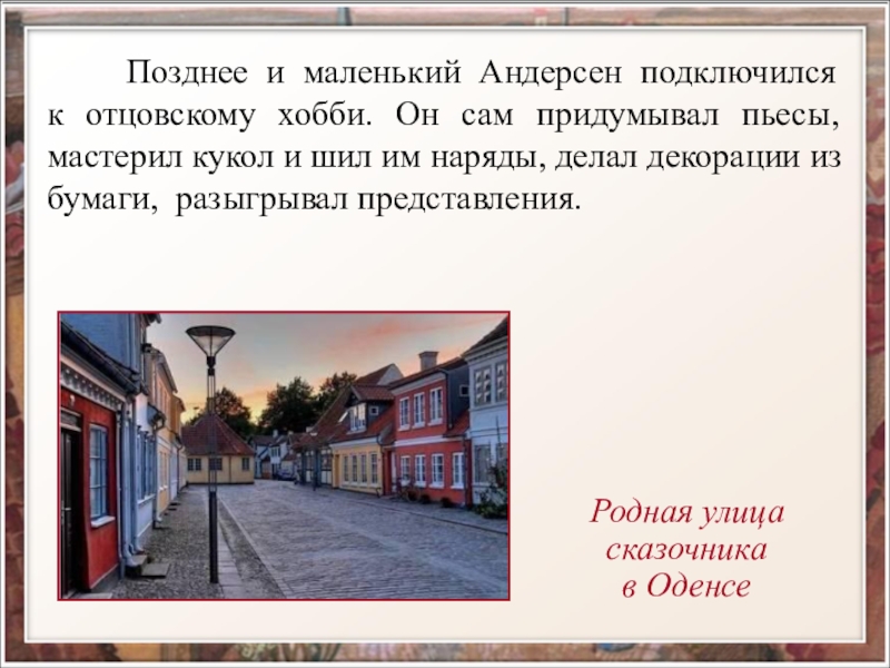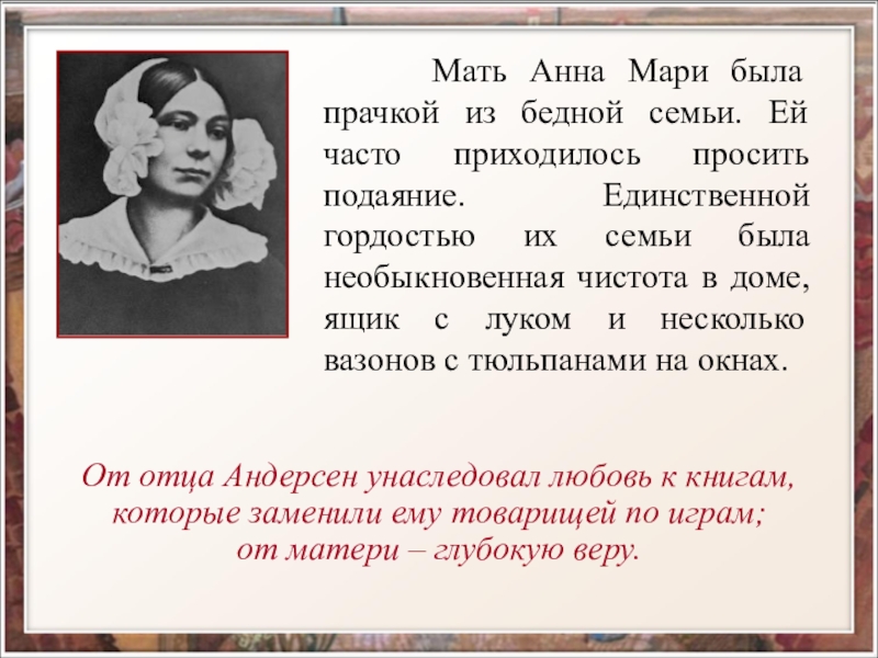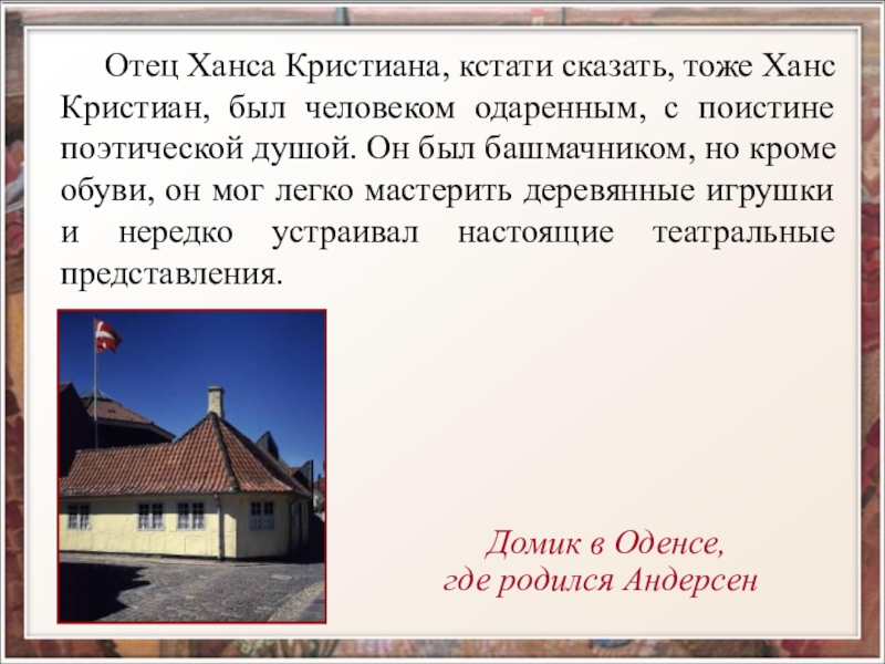 От отца Андерсен унаследовал любовь к книгам, которые заменили ему товарищей по играм;