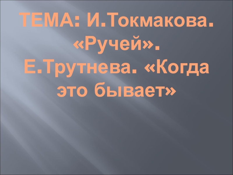 Слайд 2ТЕМА: И.Токмакова. «Ручей». Е.Трутнева. «Когда это бывает»