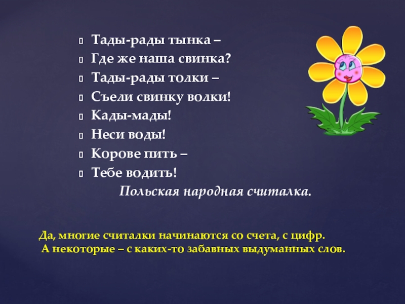 Да, многие считалки начинаются со счета, с цифр.