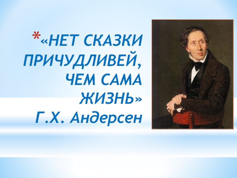 Слайд 2«НЕТ СКАЗКИ ПРИЧУДЛИВЕЙ, ЧЕМ САМА ЖИЗНЬ» Г.Х. Андерсен