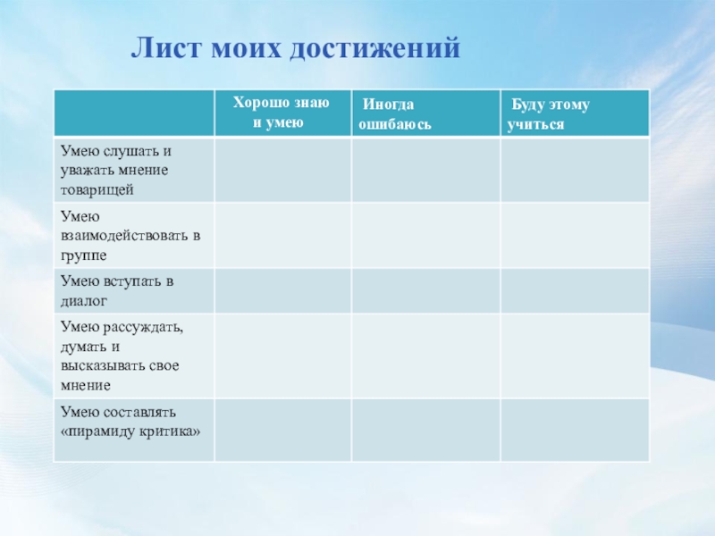 Воспитывать умение слушать и уважать мнение своих товарищей, давать оценку своей работе