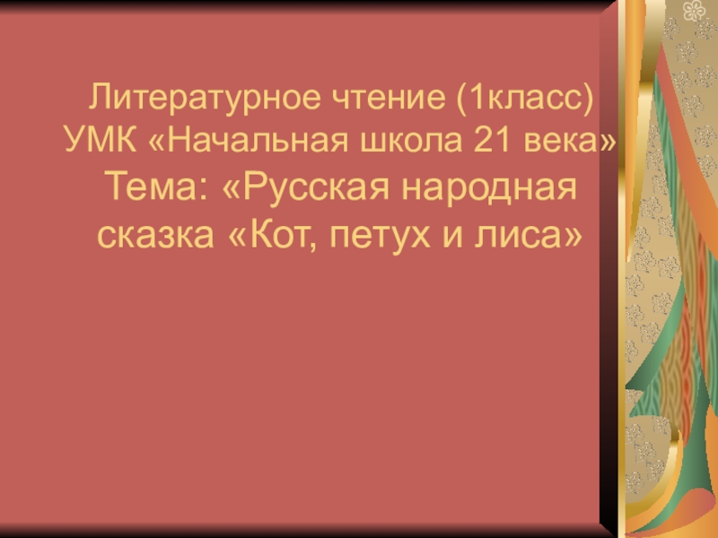 Слайд 1Литературное чтение (1класс) УМК «Начальная школа 21 века» Тема: «Русская народная сказка «Кот,