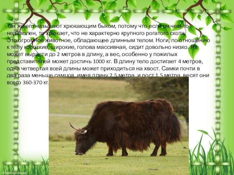 Слайд 18Так же его называют хрюкающим быком, потому что если он чем-то