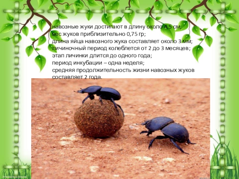 Слайд 8навозные жуки достигают в длину около 4,5 см;