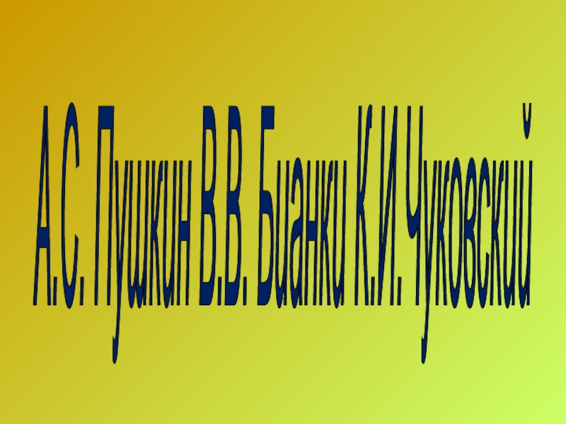 Слайд 6А.С. Пушкин В.В. Бианки К.И.Чуковский