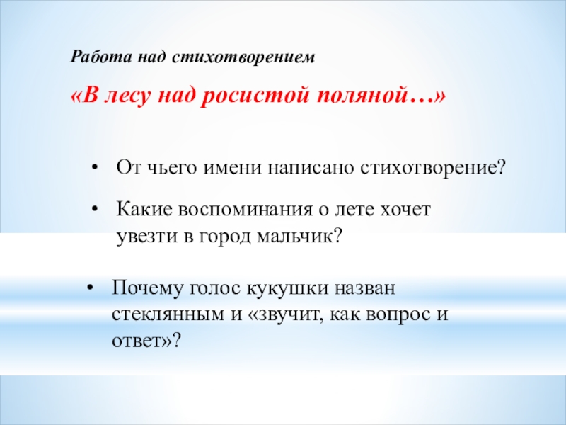 Почему голос кукушки назван стеклянным и «звучит, как вопрос и ответ»?