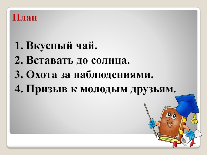 - Почему автор считает, что начинать работу надо рано утром вместе с солнцем?
