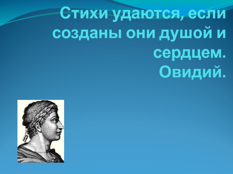 Слайд 16Стихи удаются, если созданы они душой и сердцем. Овидий.