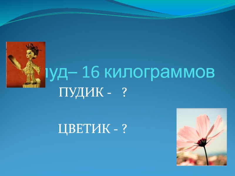 пуд– 16 килограммов   ПУДИК -  ?ЦВЕТИК - ?