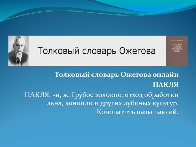 Толковый словарь Ожегова онлайнПАКЛЯПАКЛЯ, -и, ж. Грубое волокно, отход обработки льна, конопли и других лубяных культур. Конопатить