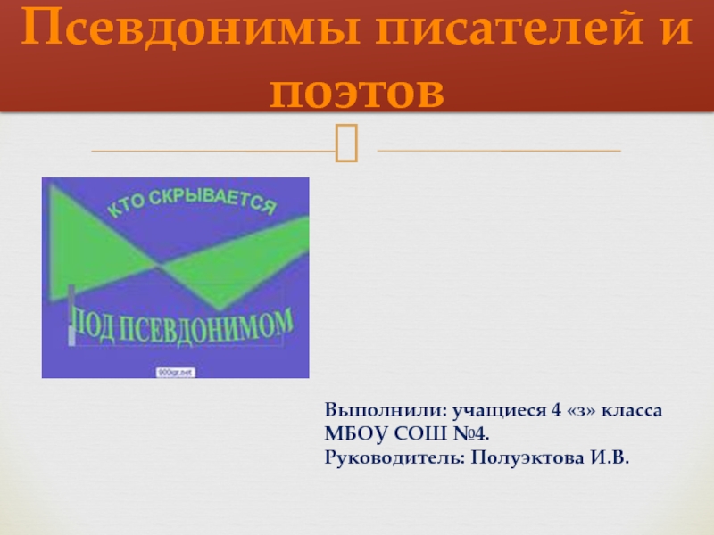 Это сайт презентаций, где можно хранить и обмениваться своими презентациями, докладами, проектами, шаблонами в формате PowerPoint с другими пользователями. Мы помогаем школьникам, студентам, учителям, преподавателям хранить и обмениваться учебными материалами.