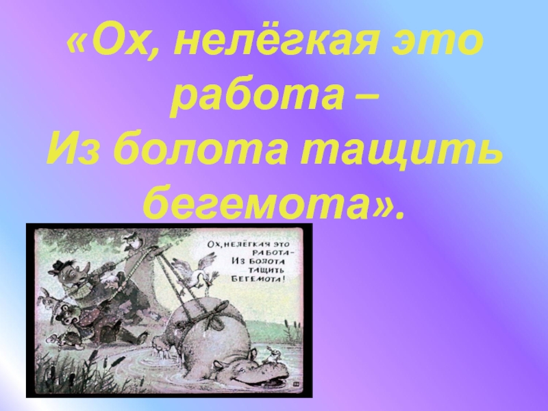 «Ох, нелёгкая это работа –Из болота тащить бегемота». «Телефон»