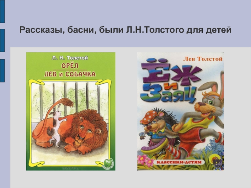 Слайд 8Рассказы, басни, были Л.Н.Толстого для детей