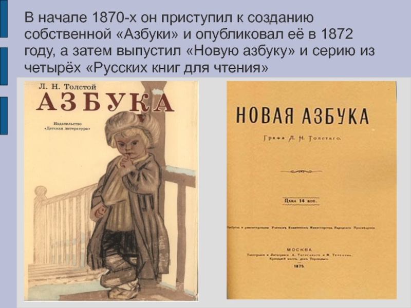 её в 1872 году, а затем выпустил «Новую азбуку» и серию из четырёх «Русских книг для чтения»