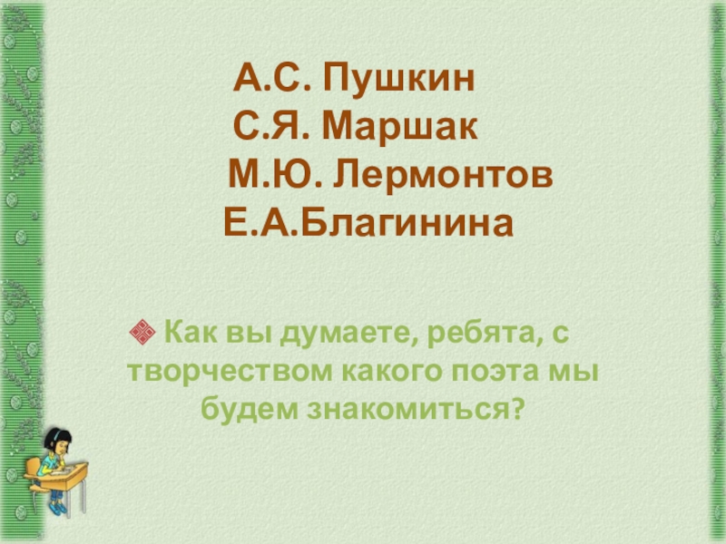 Это сайт презентаций, где можно хранить и обмениваться своими презентациями, докладами, проектами, шаблонами в формате PowerPoint с другими пользователями. Мы помогаем школьникам, студентам, учителям, преподавателям хранить и обмениваться учебными материалами.