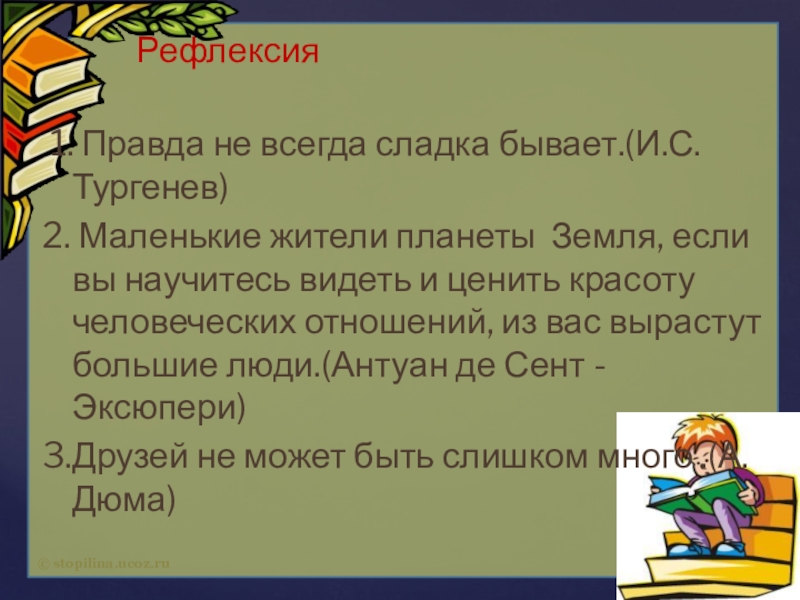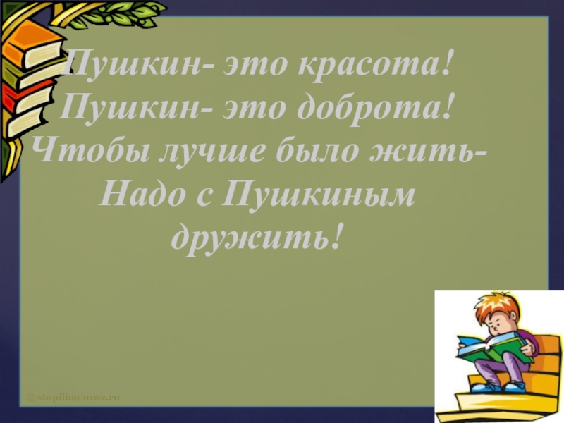 Это сайт презентаций, где можно хранить и обмениваться своими презентациями, докладами, проектами, шаблонами в формате PowerPoint с другими пользователями. Мы помогаем школьникам, студентам, учителям, преподавателям хранить и обмениваться учебными материалами.