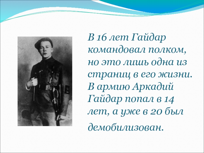 Слайд 9В 16 лет Гайдар командовал полком, но это лишь одна из