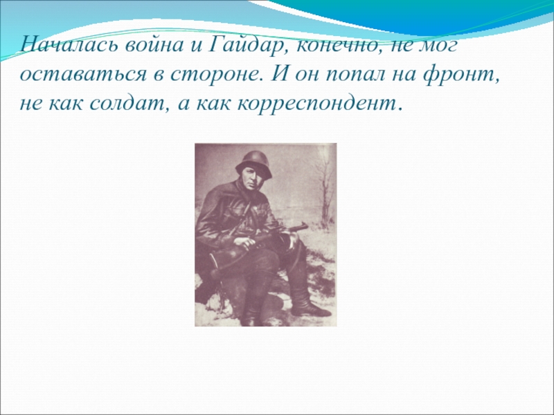 Слайд 13Началась война и Гайдар, конечно, не мог оставаться в стороне. И