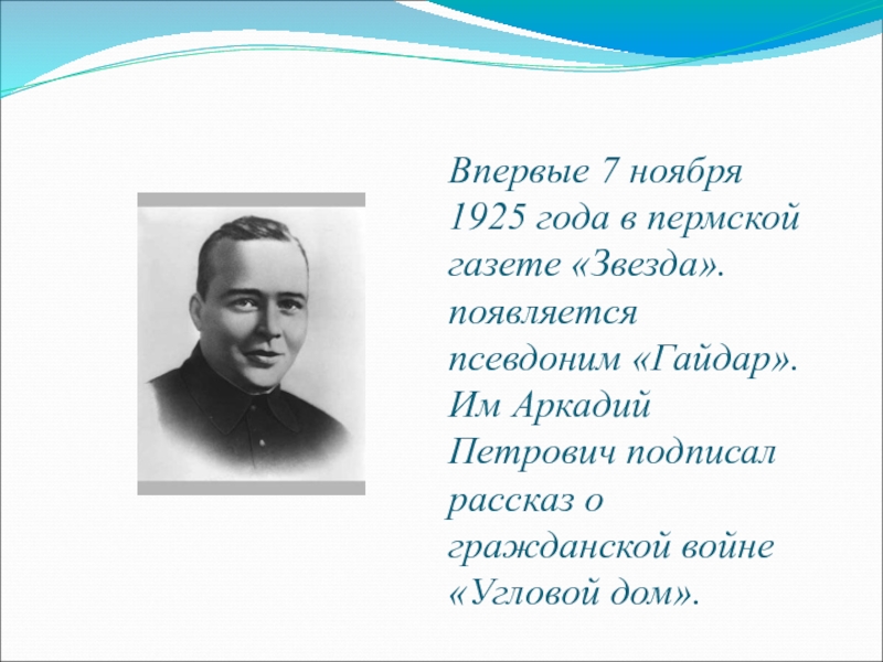 «Гайдар». Им Аркадий Петрович подписал рассказ о гражданской войне «Угловой дом».