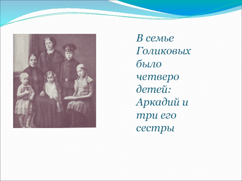 Слайд 5В семье Голиковых было четверо детей: Аркадий и три его сестры