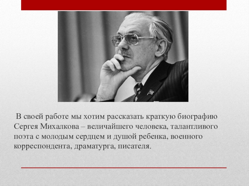 В своей работе мы хотим рассказать краткую биографию Сергея Михалкова