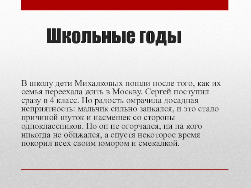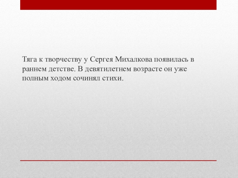Слайд 8Тяга к творчеству у Сергея Михалкова появилась в раннем детстве. В