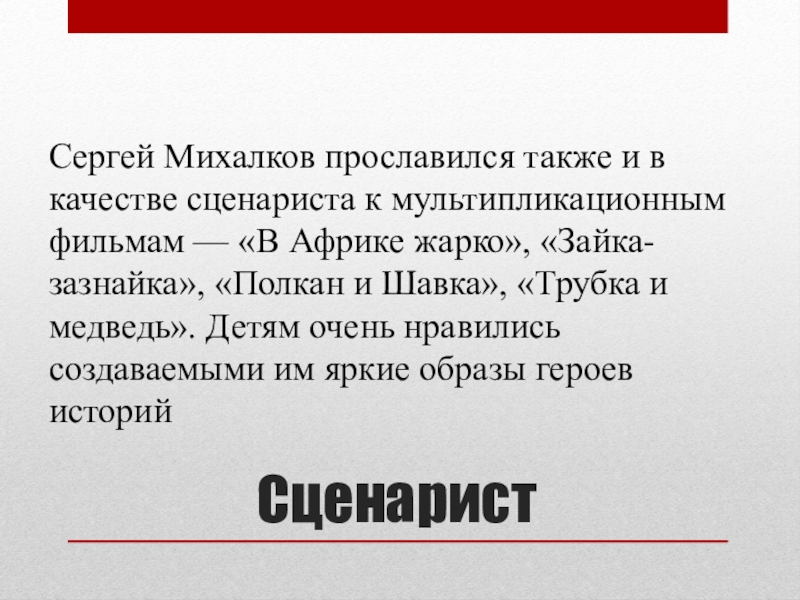 Сергей Михалков прославился также и в качестве сценариста к мультипликационным фильмам —