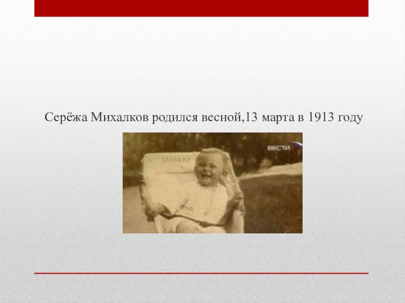 Слайд 5 Серёжа Михалков родился весной,13 марта в 1913 году