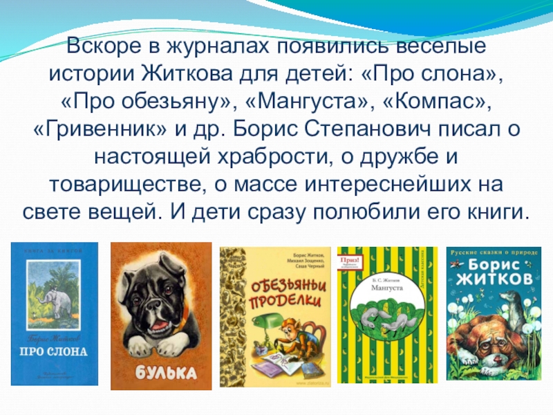 Слайд 9Вскоре в журналах появились веселые истории Житкова для детей: «Про слона»,