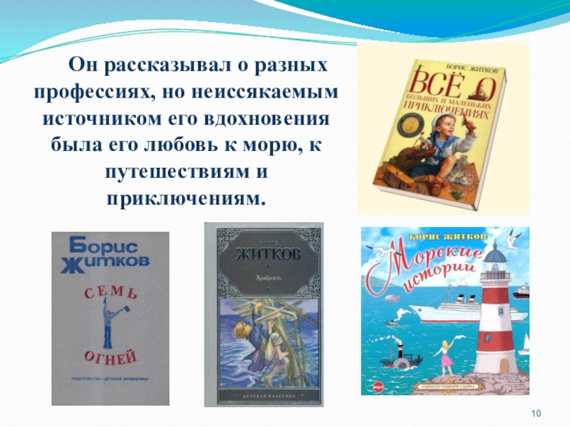 Слайд 10Он рассказывал о разных профессиях, но неиссякаемым источником его вдохновения была