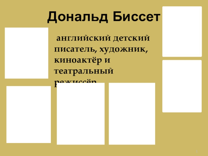 Дональд Биссет английский детский писатель, художник, киноактёр и театральный режиссёр.