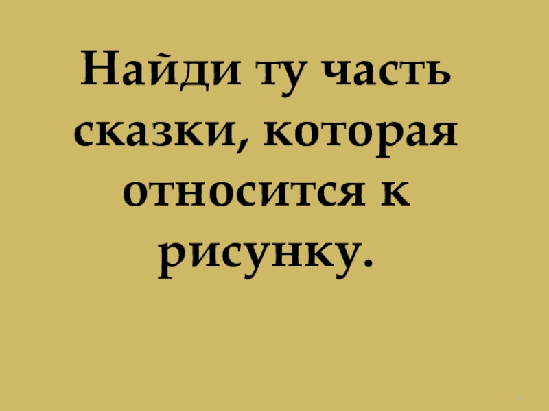 Слайд 9Найди ту часть сказки, которая относится к рисунку.