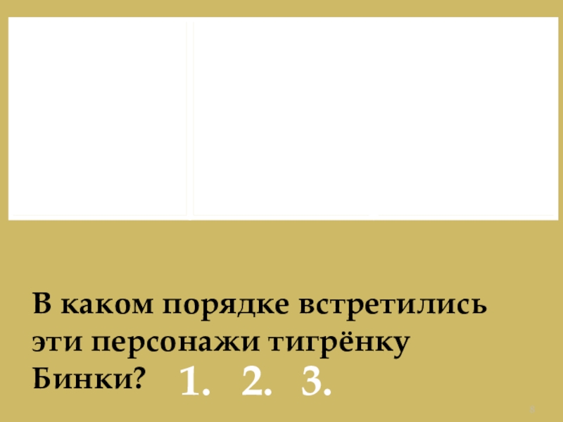 1.В каком порядке встретились эти персонажи тигрёнку Бинки?2.3.