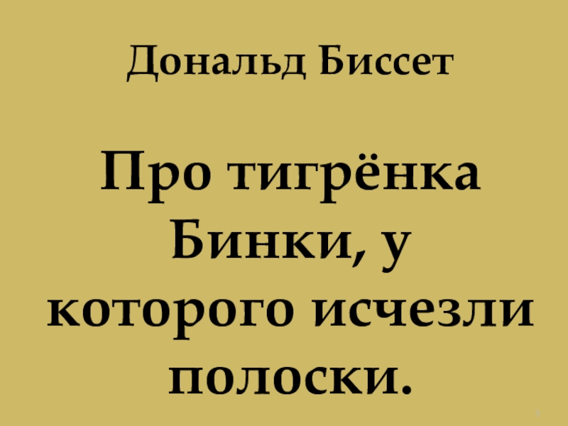 Дональд БиссетПро тигрёнка Бинки, у которого исчезли полоски.