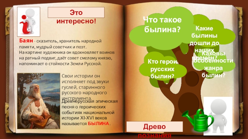 Древнерусская эпическая песня о героических событиях национальной истории XI-XVI веков называется БЫЛИНА.