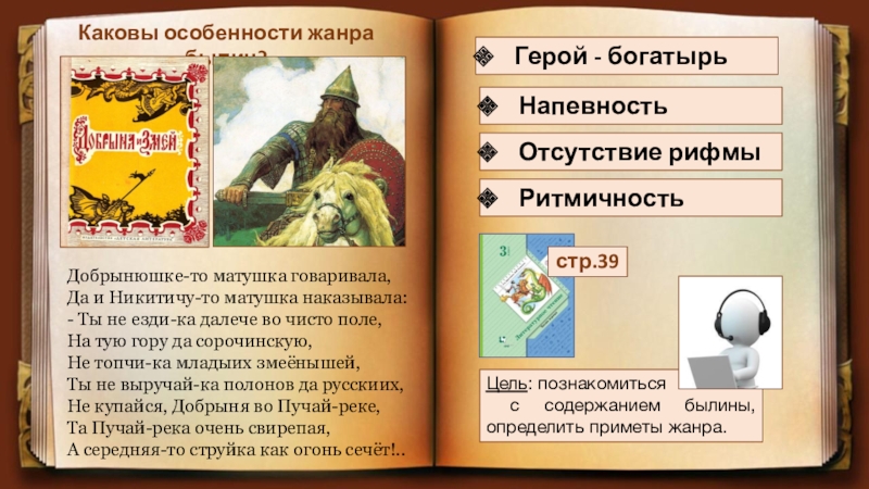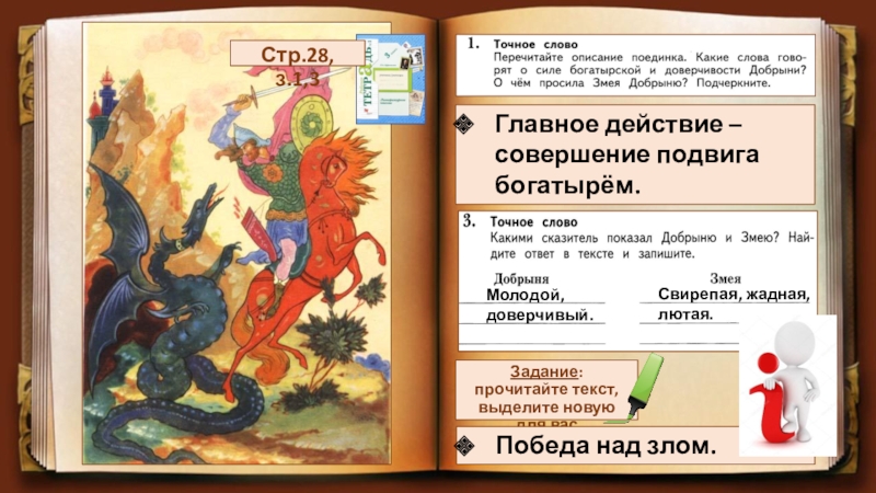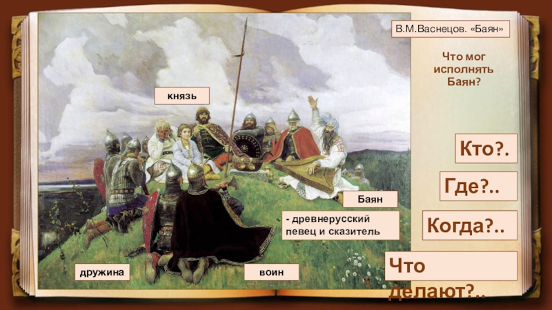 Богатырь – герой русского былинного эпоса, воин, отличающийся необычайной силой, мужественный, храбрый и справедливый защитник русской земли от врагов. Слово «богатырь» заимствовано из тюркских языков, в которых оно имело значение «храбрый воин».