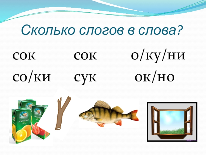 Сколько слогов в слова?сок     сок     о/ку/нисо/ки   сук
