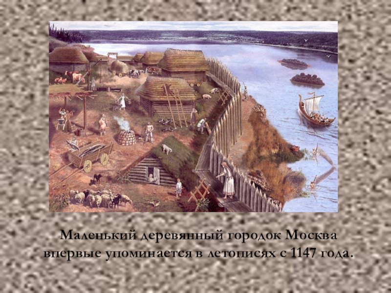 Слайд 4Маленький деревянный городок Москва впервые упоминается в летописях с 1147 года.