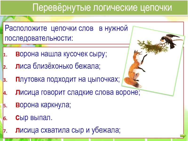 Расположите цепочки слов в нужной последовательности: