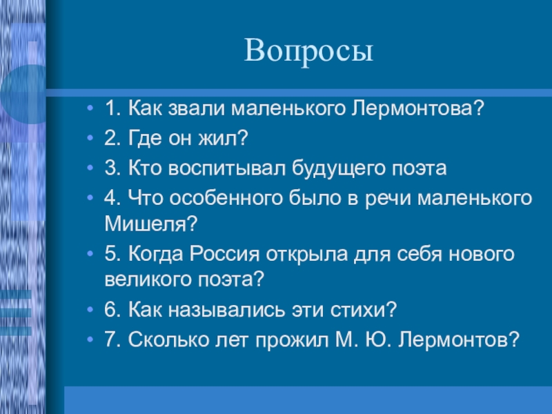 7. Сколько лет прожил М. Ю. Лермонтов?