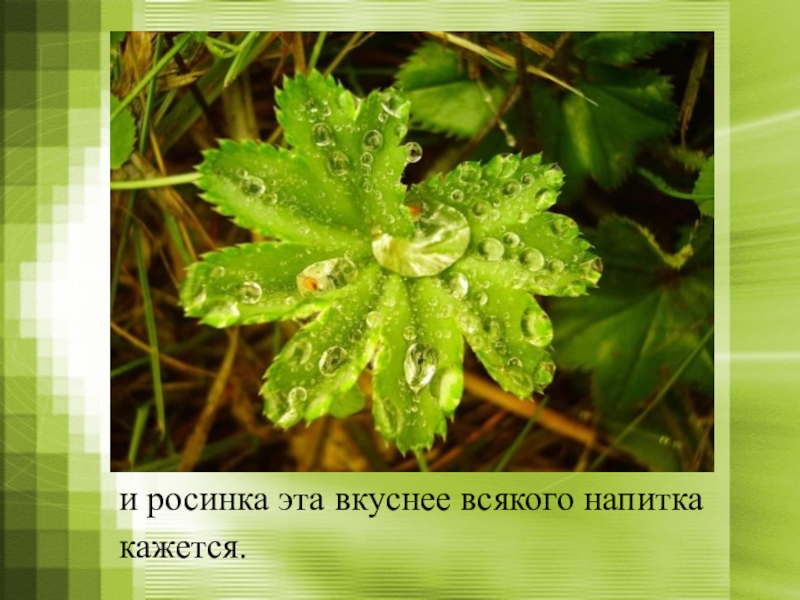 Слайд 20и росинка эта вкуснее всякого напитка кажется.