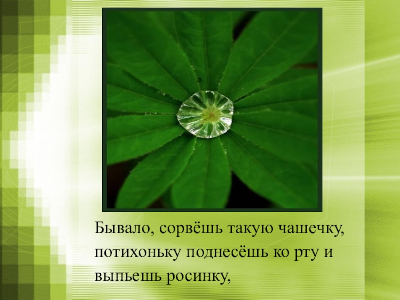 Слайд 19Бывало, сорвёшь такую чашечку, потихоньку поднесёшь ко рту и выпьешь росинку,