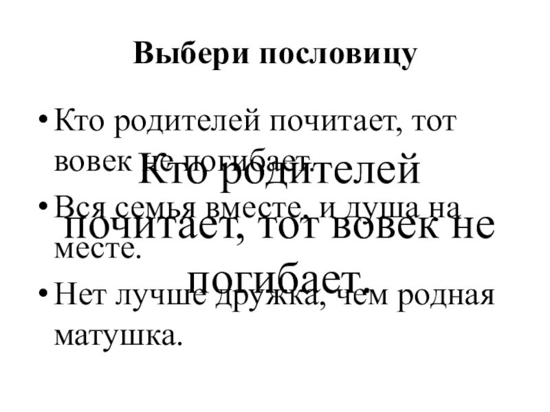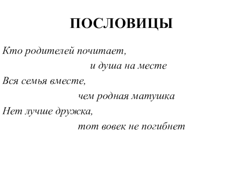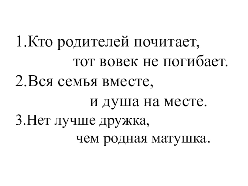 Кто родителей почитает, тот вовек не погибает.