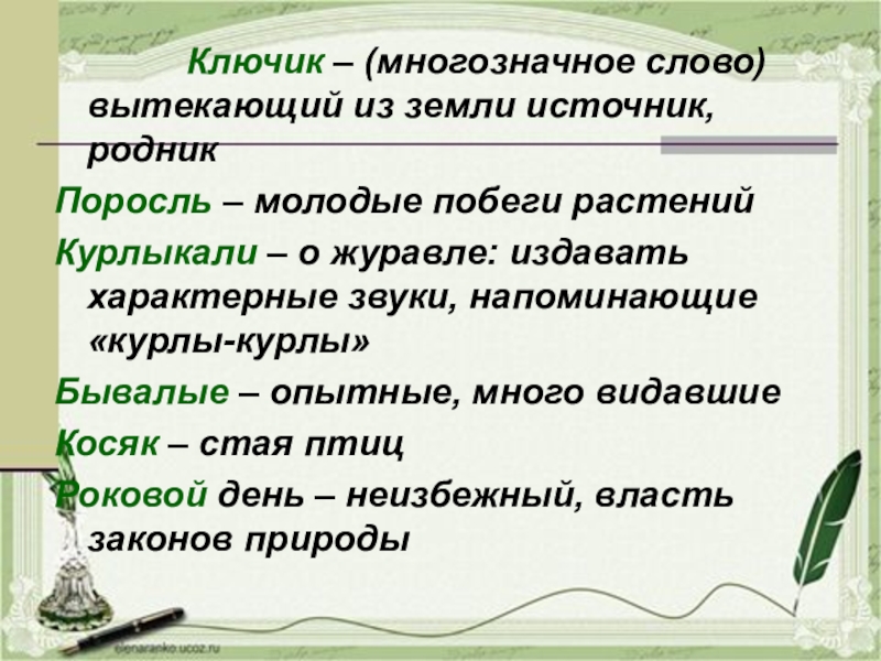 Ключик – (многозначное слово)  вытекающий из земли источник, родникПоросль