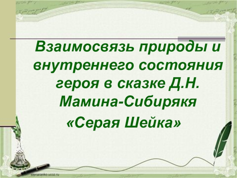 Взаимосвязь природы и внутреннего состояния героя в сказке Д.Н. Мамина-Сибирякя «Серая Шейка»