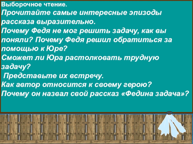 Прочитайте самые интересные эпизоды рассказа выразительно.