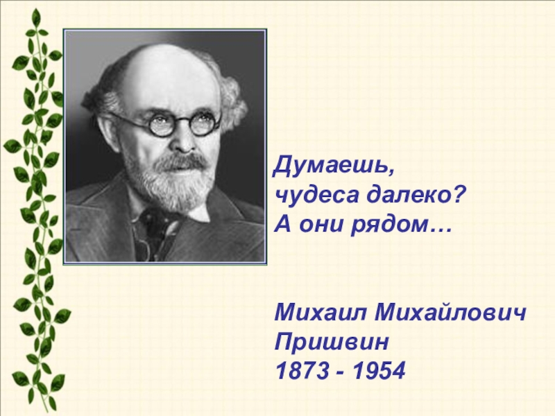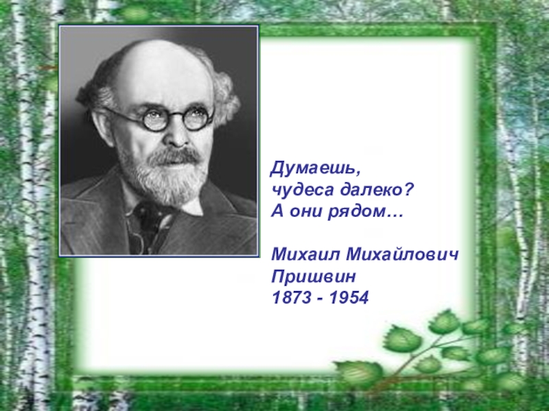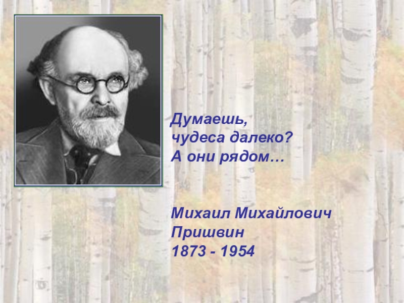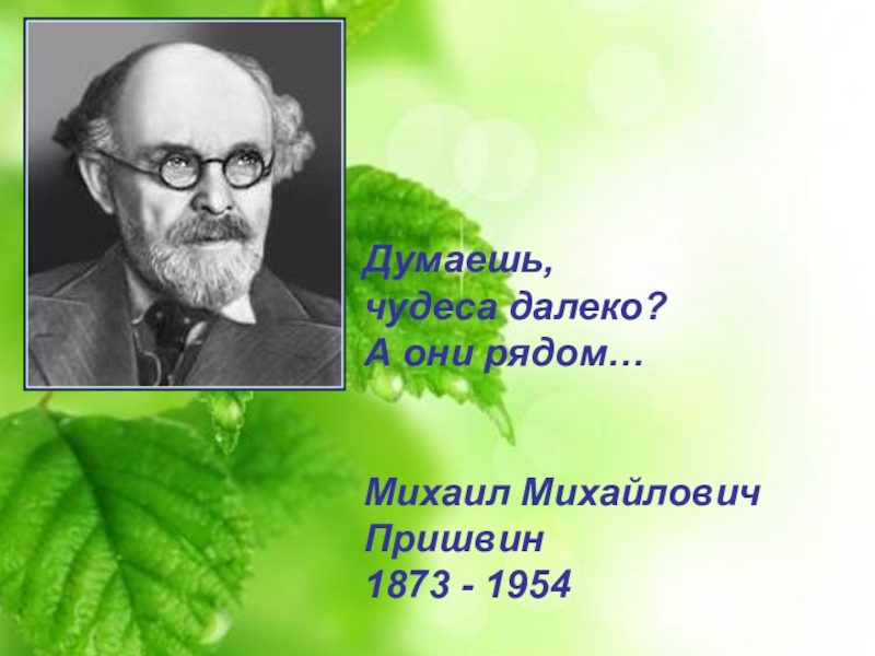 ДУМАЕШЬ – ЧУДЕСА ДАЛЕКО,  А  ОНИ ТУТ РЯДОМ1873 - 1954  МИХАИЛ ПРИШВИН