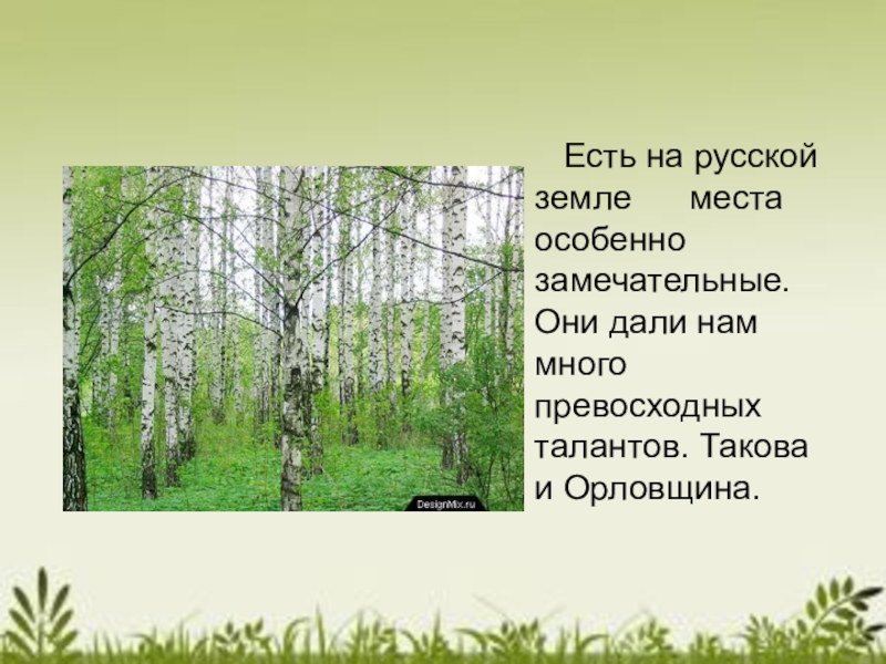 Есть на русской земле места особенно замечательные. Они дали нам много превосходных талантов. Такова и Орловщина.
