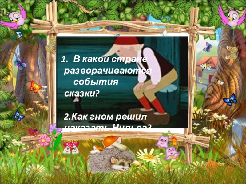 В какой странеразворачиваются событиясказки?2.Как гном решил наказать Нильса?
